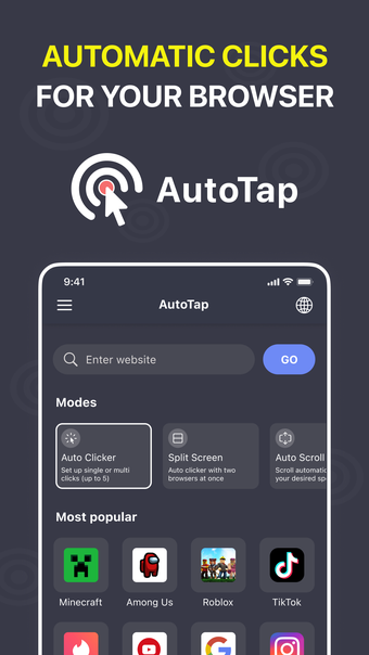 يوفر التطبيق العديد من الميزات لتعزيز تجربة النقر التلقائي. يمكن للمستخدمين إعداد ما يصل إلى 5 نقرات في نفس الوقت، مما يتيح إجراءات متعددة بنقرة واحدة فقط. تسمح وظيفة الشاشة المنقسمة للمستخدمين بالنقر على متصفحين مختلفين في نفس الوقت. تقضي ميزة التمرير التلقائي على الحاجة إلى التمرير يدويًا أثناء قراءة الأخبار أو الكتب. تقوم ميزة التحديث التلقائي بتحديث الصفحة تلقائيًا بفاصل زمني محدد، مما يضمن عرض المحتوى الأحدث دائمًا. بالإضافة إلى ذلك، يدعم النقر التلقائي التقاط لقطات الشاشة تلقائيًا، مما يتيح للمستخدمين التقاط لقطات الشاشة وحفظها على جهازهم. يتضمن التطبيق أيضًا مانع إعلانات لحظر الإعلانات المزعجة أثناء التصفح في متصفحات التطبيق.